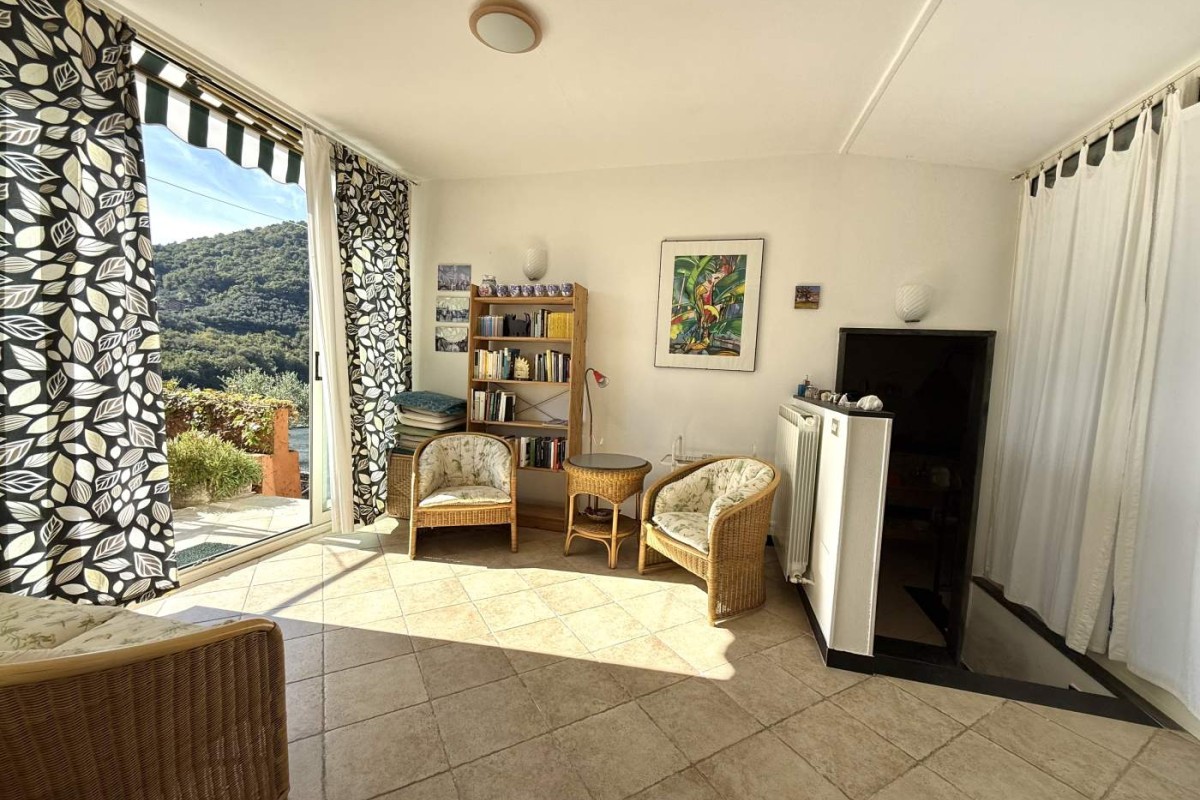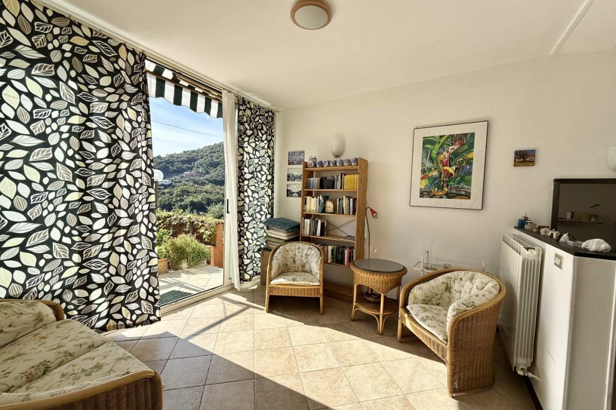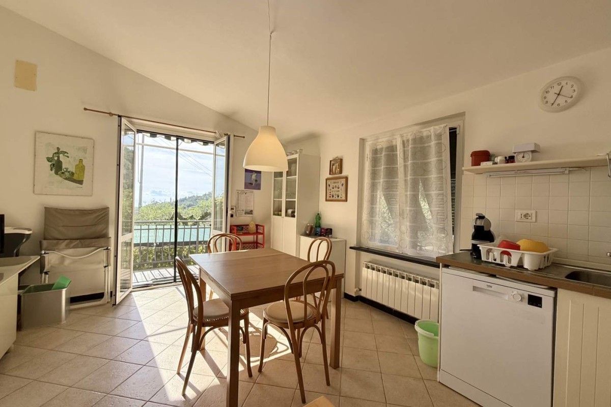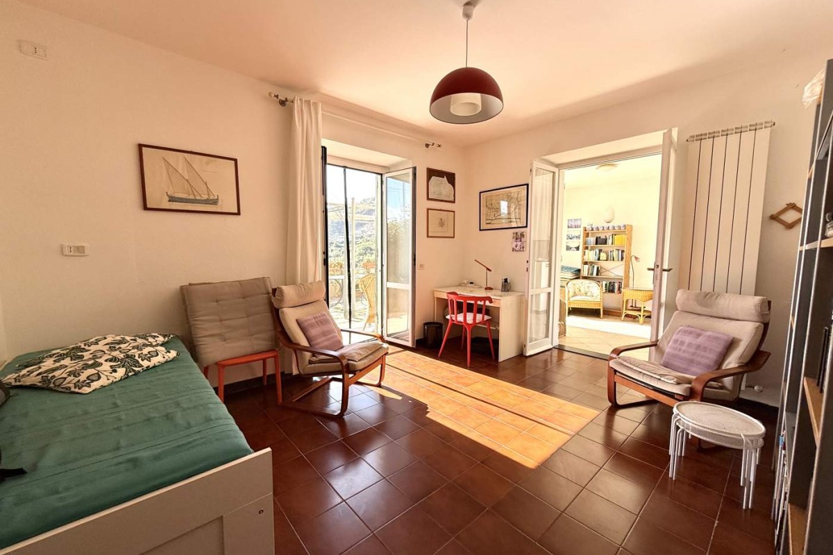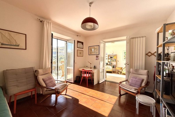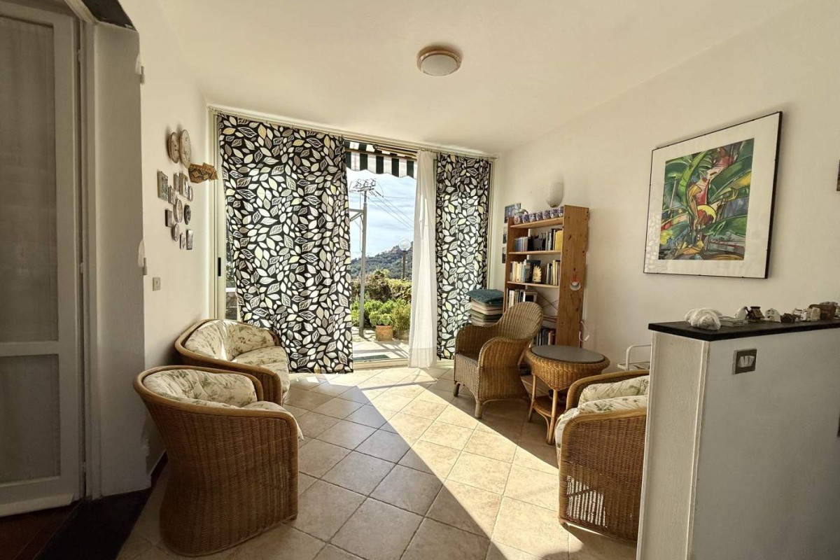 Dalla zona living si accede direttamente al terrazzo con splendida vista mare, perfetto per momenti di relax all’aperto o cene al tramonto.