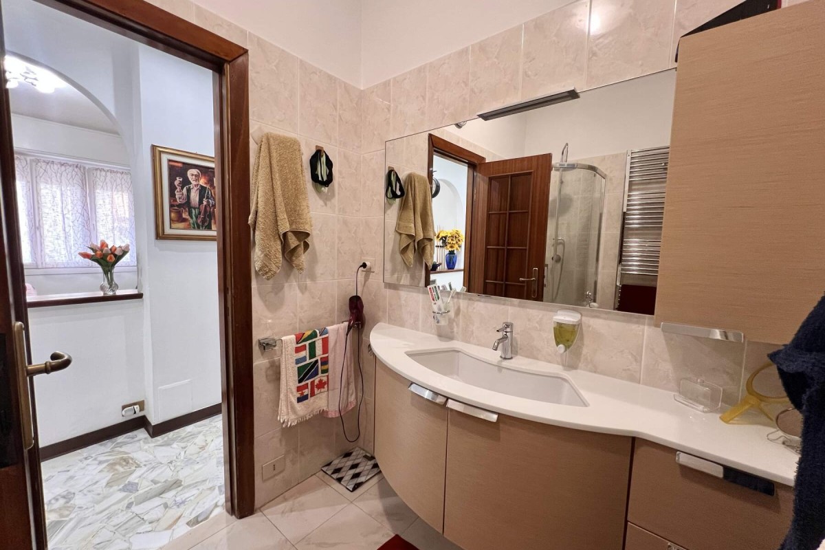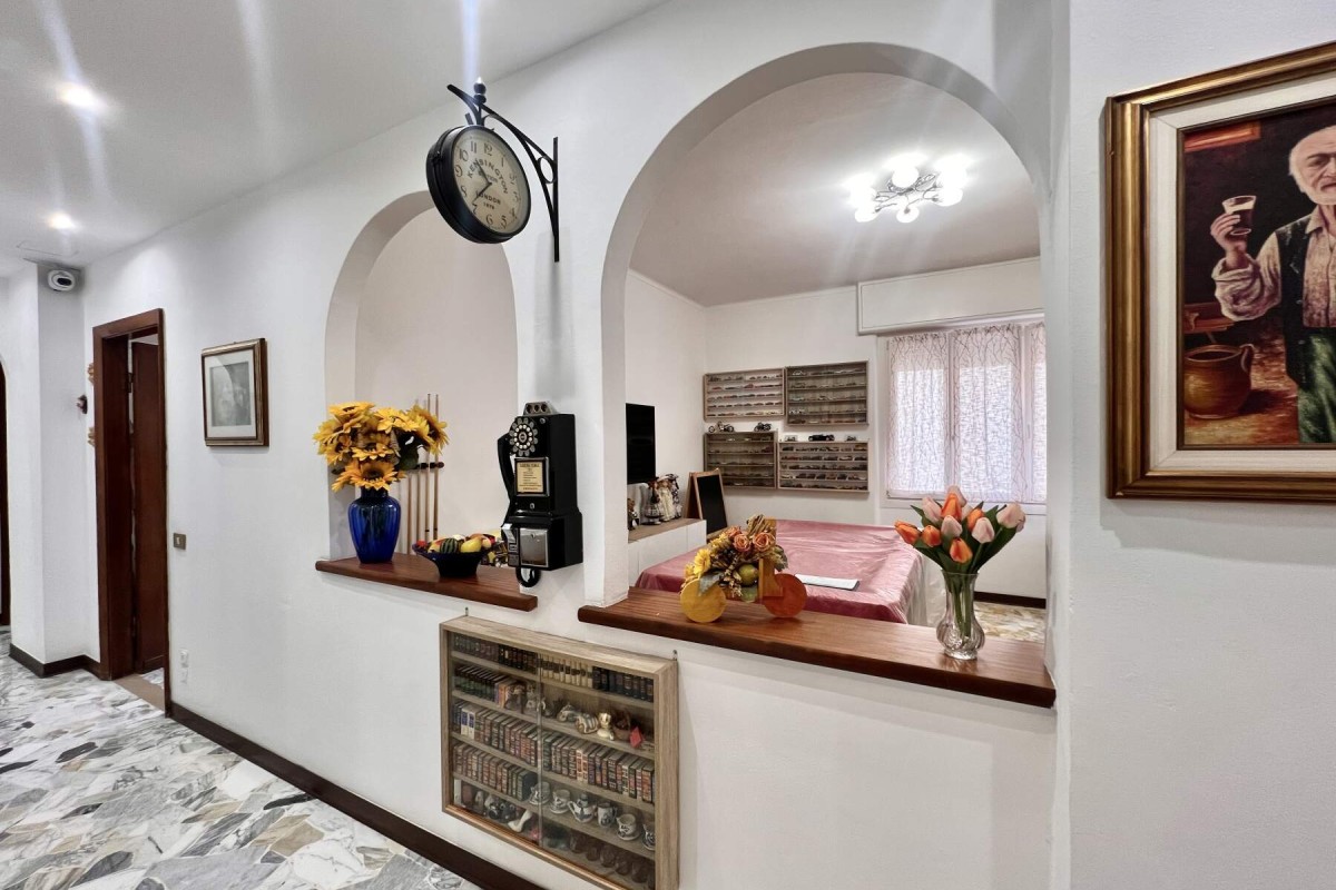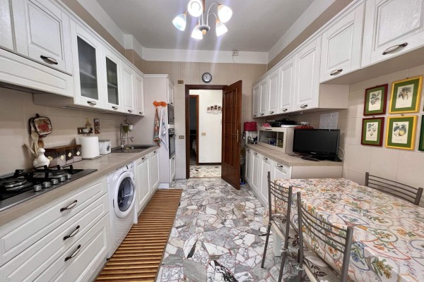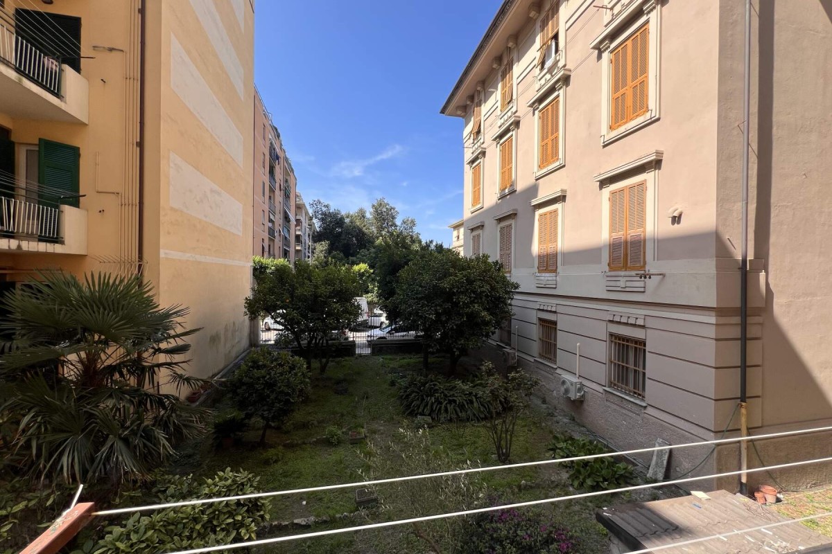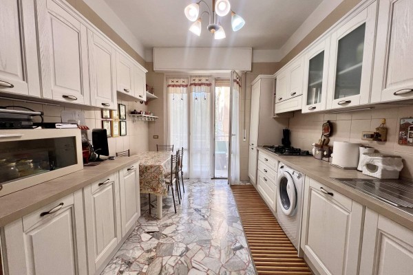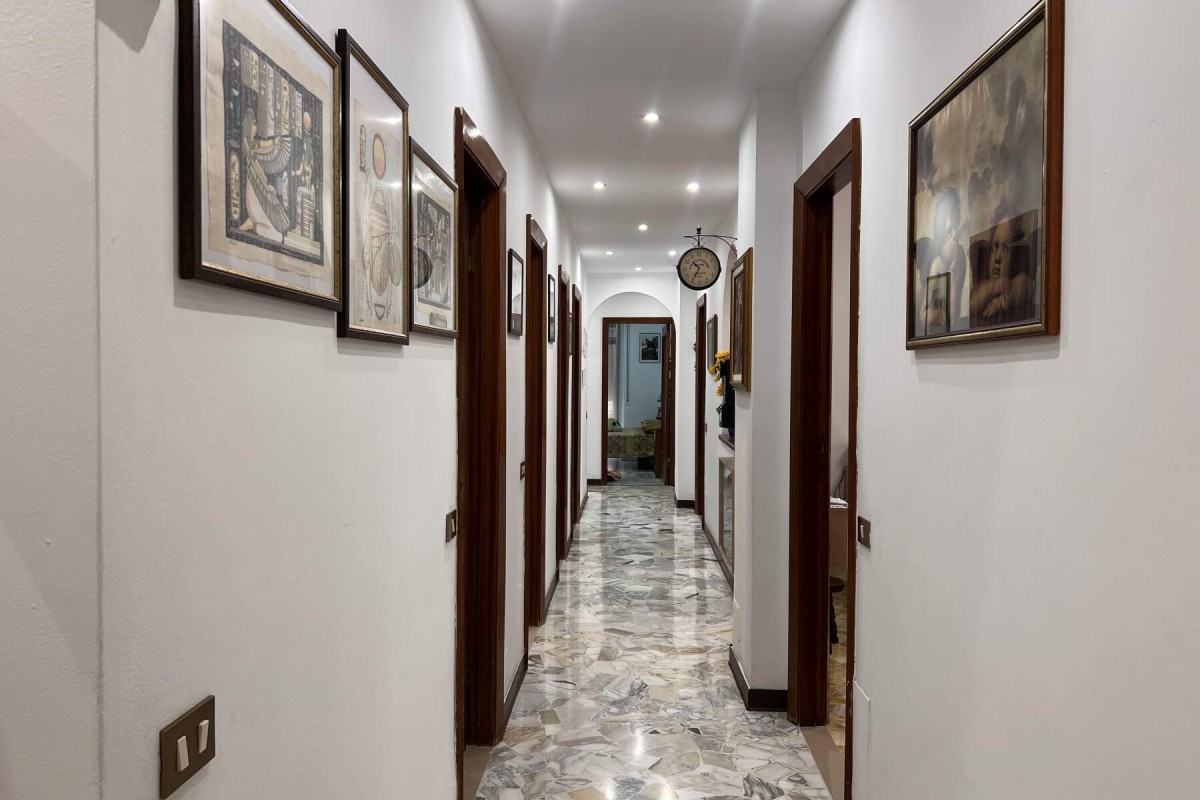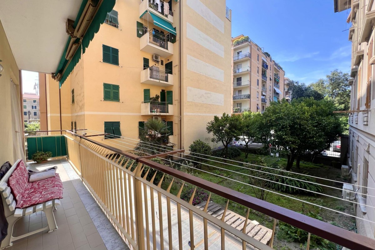 Ingresso genovese, corridoio con contro soffitto con luci a led, ampio soggiorno dal quale si accede ad un balcone con vista aperta e nel verde, cucina abitabile anch'essa con accesso al balcone, ben 4 camere da letto tutte matrimoniali e di grandi dimensioni, infine troviamo 2 bagni entrambi finestrati e grande ripostiglio.