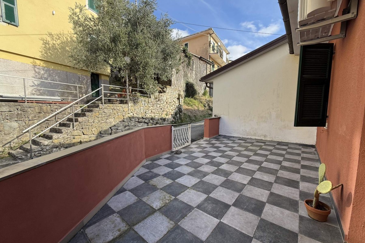 Al primo piano si sviluppa l’abitazione principale, con ingresso da un ampio terrazzo.